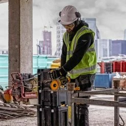The DCG418NT 54V XR 125mm FlexVolt Angle Grinder comes body only – batteries and charger are supplied separately.