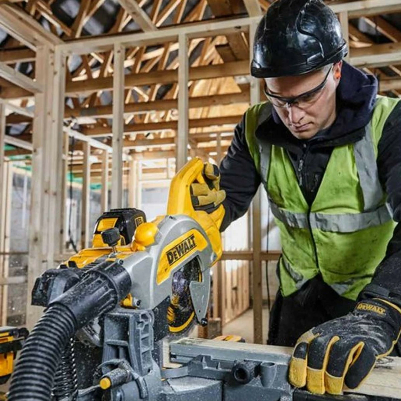 - 1 x DCS777T2-GB 54V XR Flexvolt 216mm Mitre Saw