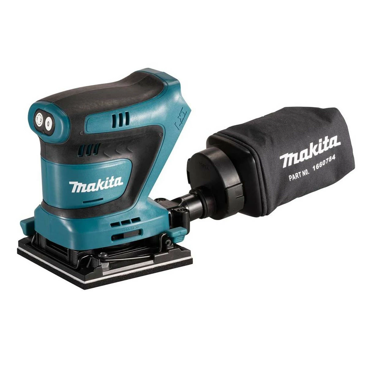 Makita DBO481Z is a powerful, but compact 18V sander that can produce 28,000/22,000 sanding strokes per minute and 14,000/11,000 orbits per minute providing performance comparable to corded power tools, but with the portability and convenience of a battery powered tool.