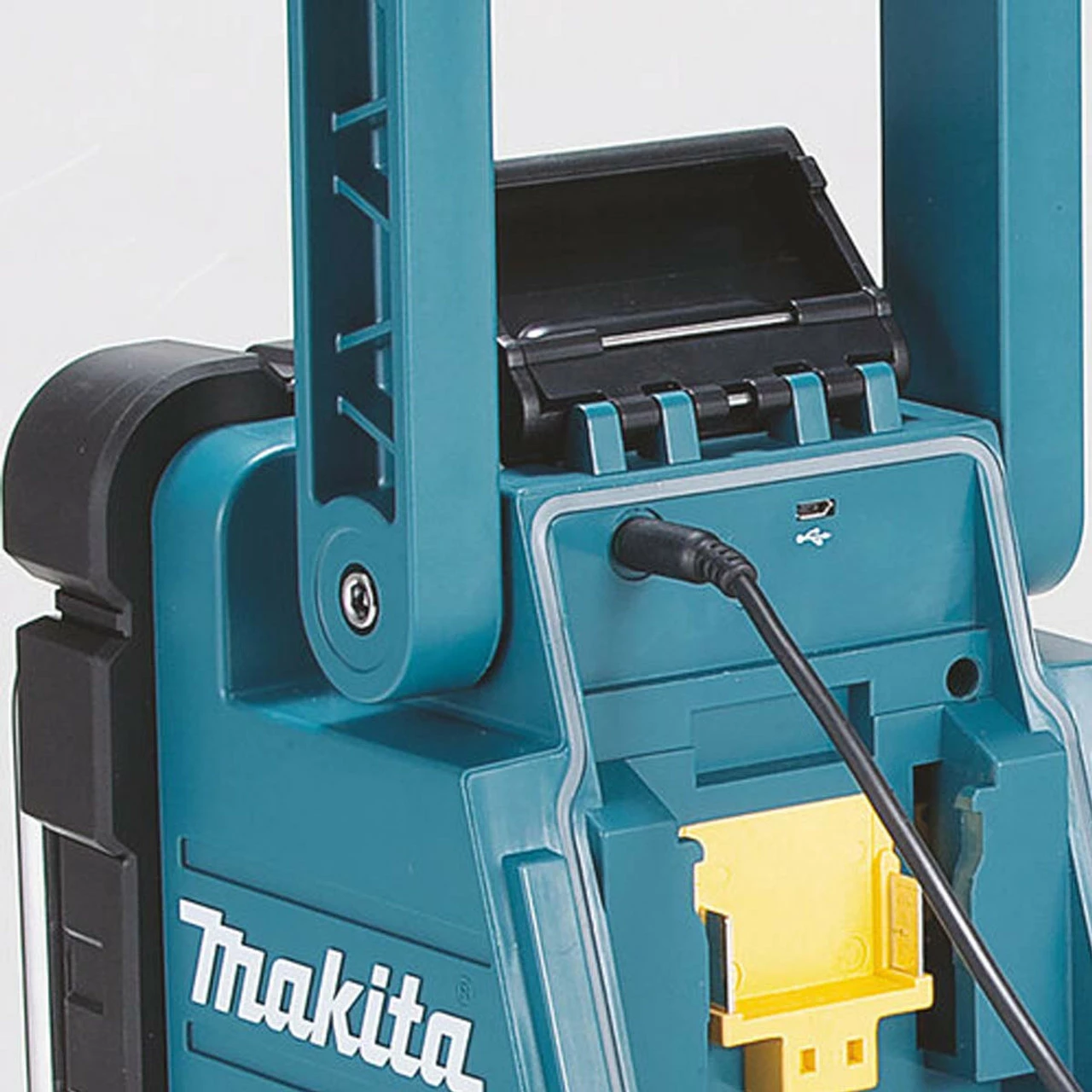 The radio includes an AUX-IN jack for connecting to external audio sources as well as a Micro USB port. With an 18V LXT Li ion 6.0 Ah battery, the radio can run for an impressive 33 hours and is compatible with all Makita 7.2V Li ion, CXT and LXT batteries.
