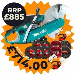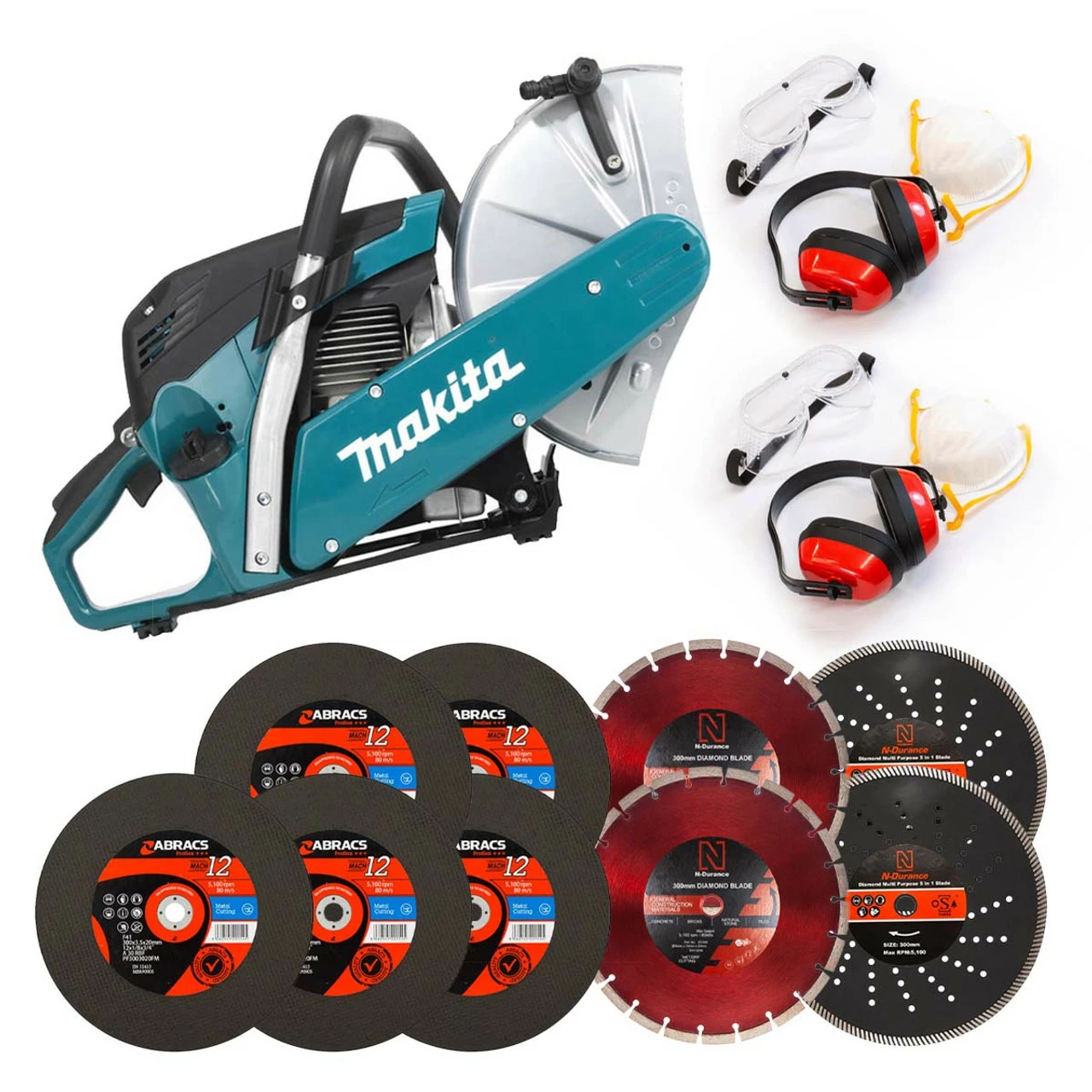Makita EK6100 305mm 2-Stroke Petrol Disc Cutter with 4x Diamond Blades, 5x Metal Cutting Disc & 2x Safety Kits
