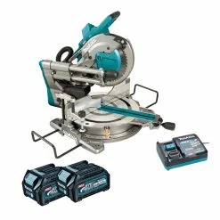This mitre saw is supplied with 2x BL4025 XGT 2.5Ah 40v Max Li-ion Battery, 1x DC40RA Fast Charger.