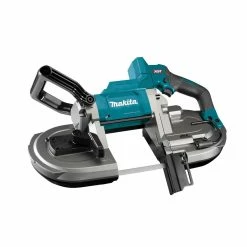 The Makita PB002G is a 40v Max XGT battery-powered cordless band saw. This band saw is primarily intended for cutting 4″ to 4-1/2″ steel pipes. The belt speed can be adjusted electronically and can reach 3.2 m/min. Because of the stable bridge construction with an aluminum frame, the machine is extremely durable.