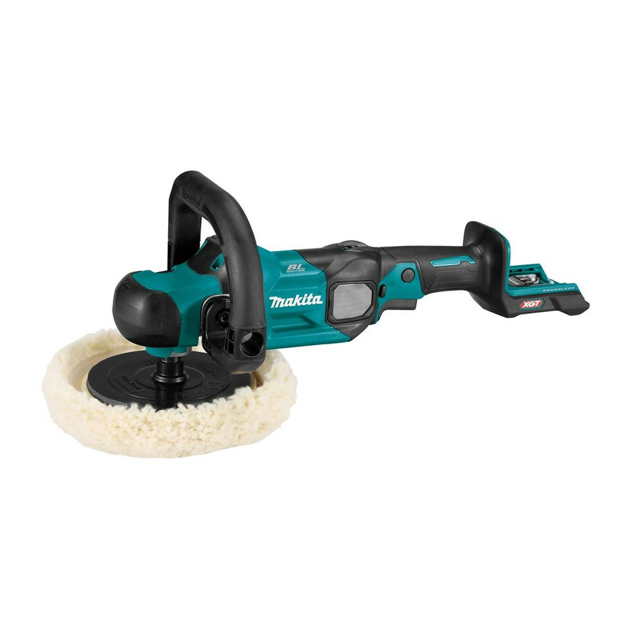 The Makita PV001G 40V Polisher is powered by an effective brushless motor for longer battery run time and is primarily made for polishing in the car painting business. With constant speed control and soft-start, the PV001G increases speed gradually to avoid snagging and potential surface damage. Constant speed control increases power to the motor in response to workload. Higher speeds are suitable for applying polishing chemicals to remove scratches, while lower speeds are better for polishing curves, small areas, or finishing. The variable speed dial adjusts the rpm to meet the application. Other features include a trigger lock to lessen user fatigue, an adjustable top handle, an ergonomic grip, and anti-restart to avoid unintentional operation during battery changes.