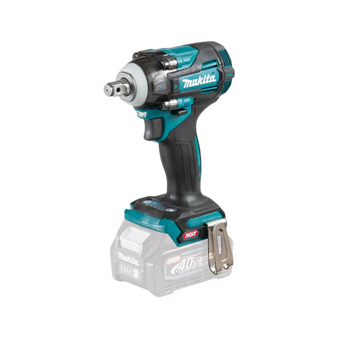 The Makita TW004G is a cordless impact wrench powered by 40Vmax XGT Li-Ion battery. It has a trigger switch with full speed mode. Variable speed mode can be changed to full speed mode simply by pushing a button. Because in full speed mode the trigger travel is shorter the full speed is reached faster. Supplied with 2x BL4025 2.5Ah 40v Max Batteries, DC40RA Fast Charger Set., Makpac Type 2 Connector Case and a Belt clip.