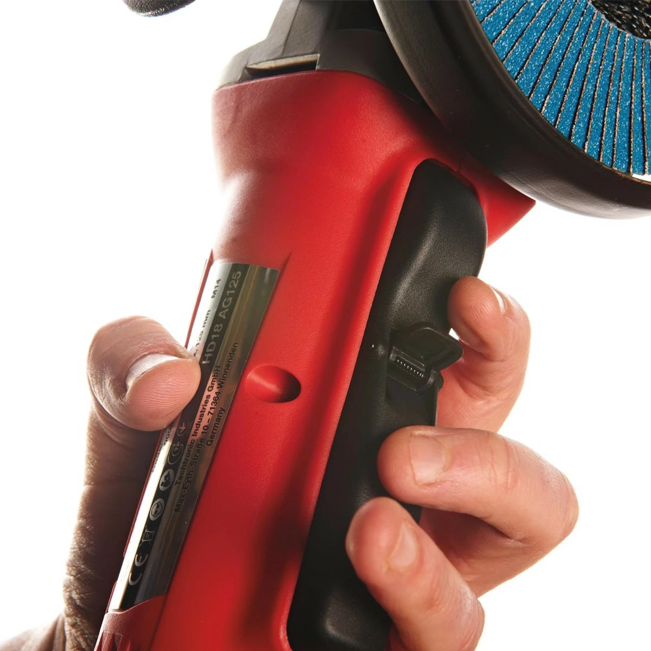 The angle grinder has a full metal gear case for heavy-duty durability. REDLINK™ overload protection electronics in both the tool and battery pack deliver excellent system durability. The reduced height of the gear box and slim girth design provide optimum ergonomics for comfortable use. An exclusive paddle switch design and multi-position side handle help improve ease of use.