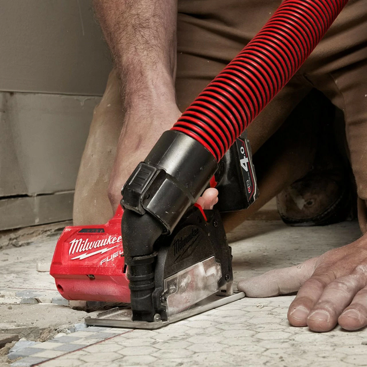 The Milwaukee M12 FCOT-0 Cut Off Tool for fast cutting of various materials, with forward and reverse rotation to direct debris away from the user. Optimised for one-handed use, it replaces tools that require 2 hands whilst cutting. An ergonomic and in-line design for control and improved line of sight. There is an additional LED work light that illuminates the work surface. The M12FCOT-0 replaces traditional angle grinders for cutting tiles, threaded rod, uni-strut and cable trays.