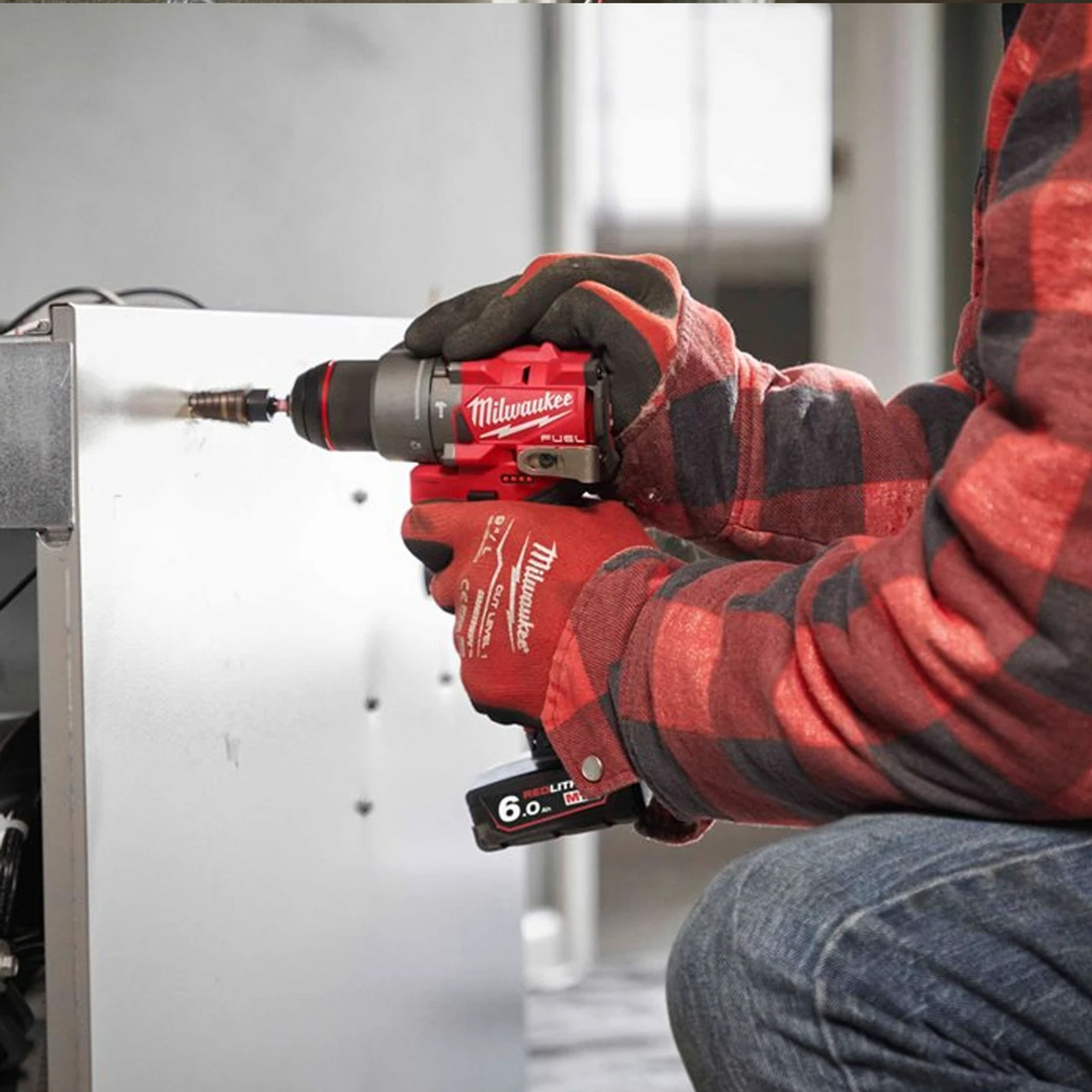 The Milwaukee M12FPD2-602X Percussion Drill has a POWERSTATE™ brushless motor that delivers up to 44Nm of torque and 16 settings to tackle a variety of tasks. The 13mm metal chuck allows for quick and easy bit changes, and the tool is powered by the cutting-edge REDLINK PLUS™ intelligence system, which provides advanced digital overload protection for both the tool and the battery.