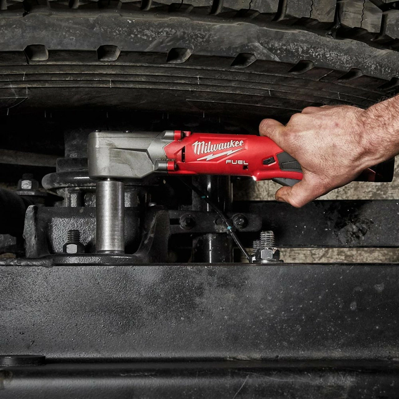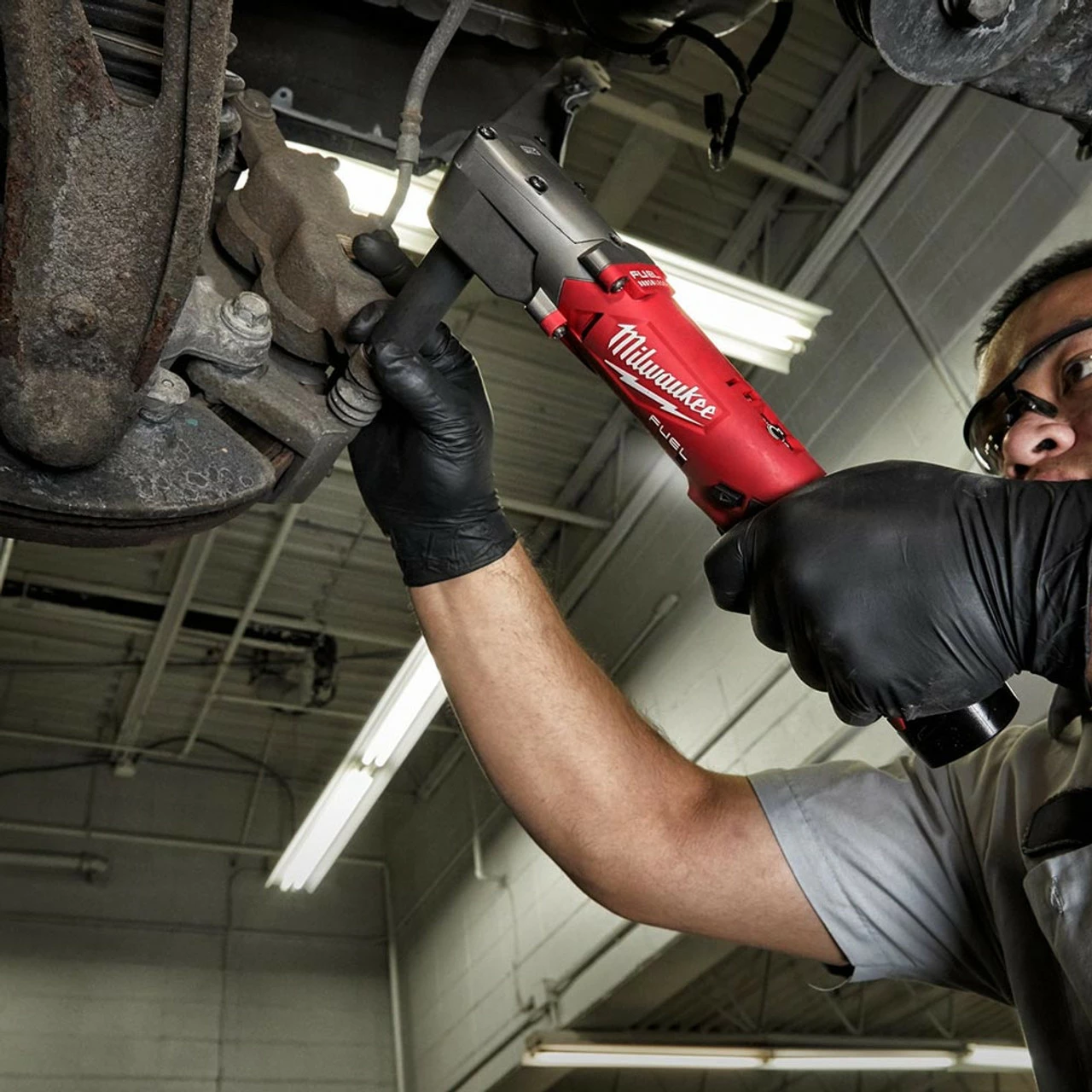 The Milwaukee M12 FRAIWF38 Fuel™ ⅜” Right Angle Impact Wrench is a powerful tool ideally suited for removing bolts and fasteners. The wrench delivers 220 ft-lbs. of nut-busting torque, without excessive kickback. It’s sleek design also makes it the perfect implement for work in tight spaces and difficult-to-reach areas, especially when compared with conventional pistol grips. The profile head is just 2.2”, which reduces the need for socket extensions.