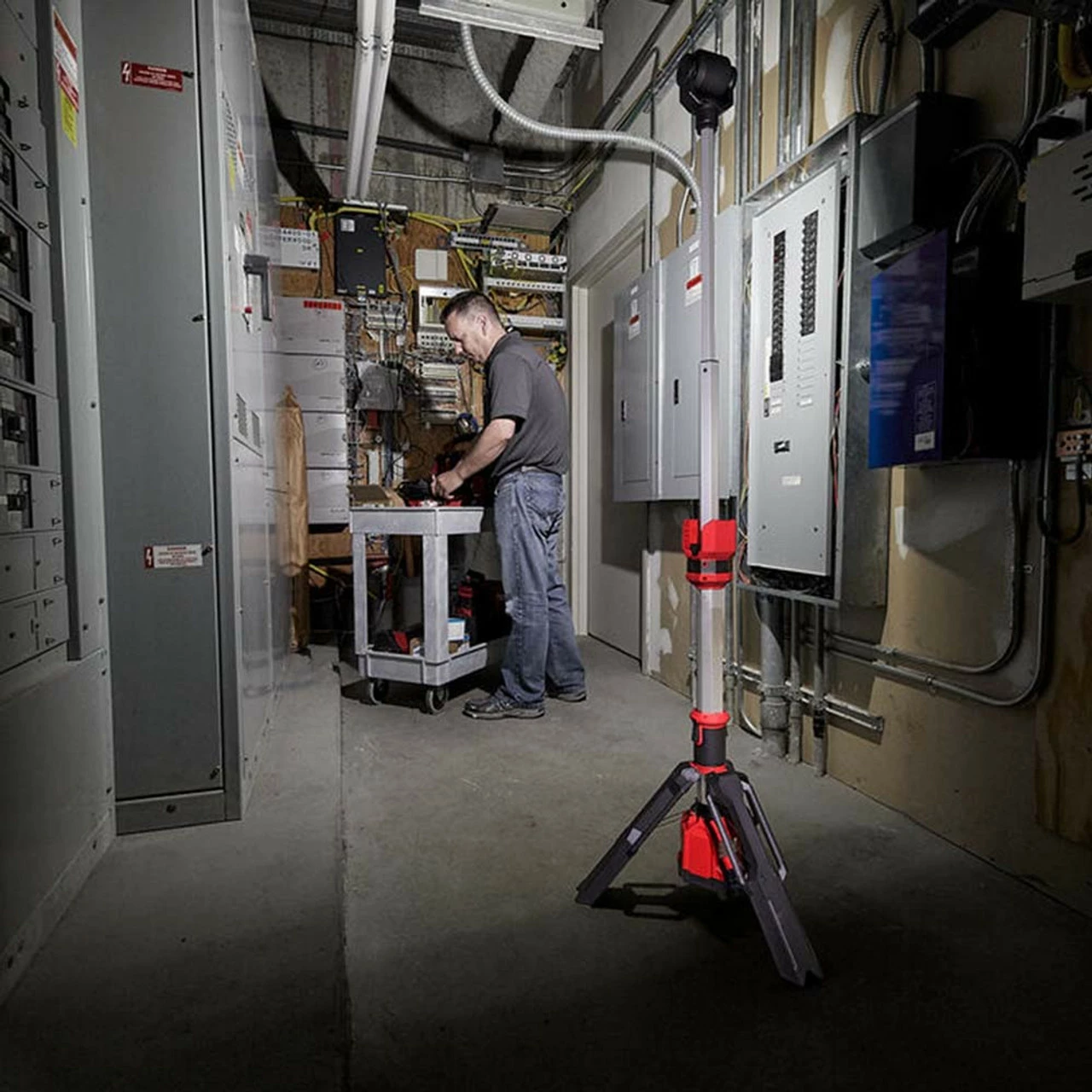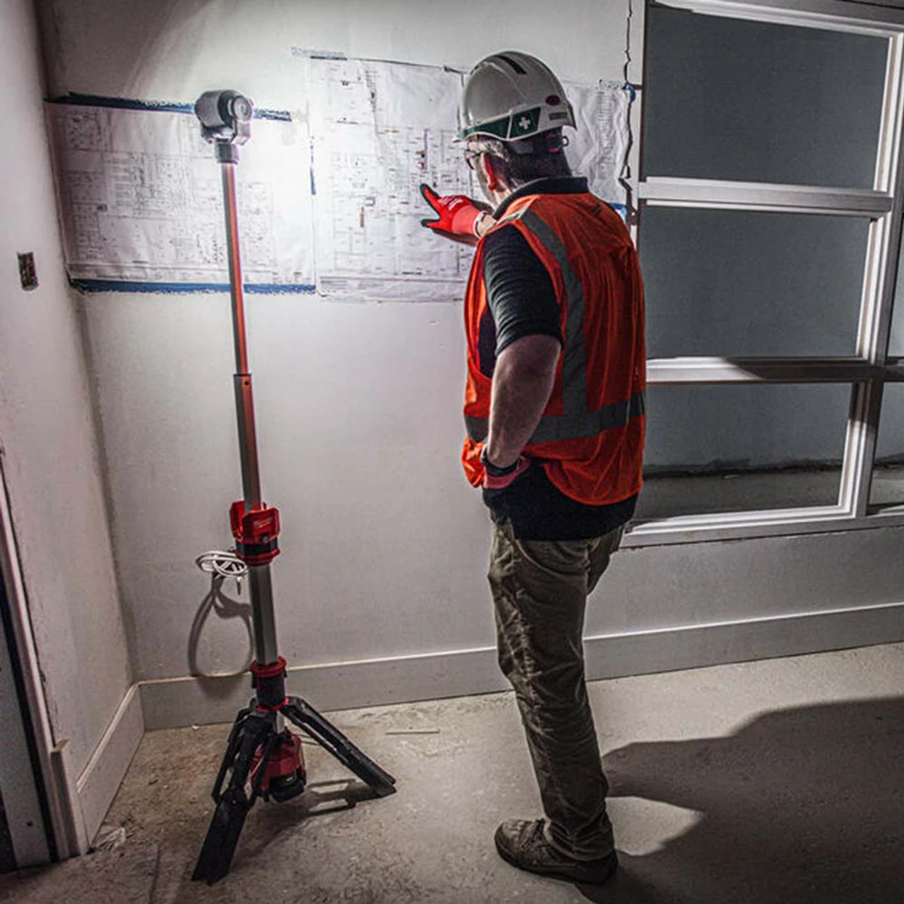 The Milwauke M12™ Rocket Dual Power Tower Light is more portable and offers an all-day operation. The compact light tower is the lightest in its class with a 45% smaller footprint than our M18™ Rocket Tower Lights. This allows you to easily carry and set it up in the most confined spaces. When not in use, the portable light tower collapses down to just 31″ in length with three side handles allowing you to easily transport and store it. After deployment, the portable tower light is supported by impact-resistant, reinforced legs that form a compact base with a low center of gravity to help survive any job site.