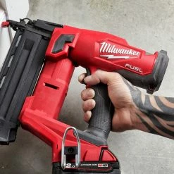 The Milwaukee M18 FN18GS FUEL™ 18ga Straight Finish Nailer offers the best-in-class power to consistently seat nails sub-flush to the surface in hardwoods. Ready to Fire Nail Technology eliminates ramp-up time between each nail discharge. Different designed noses stored on board, allow the user to get the best finish no matter what the application.