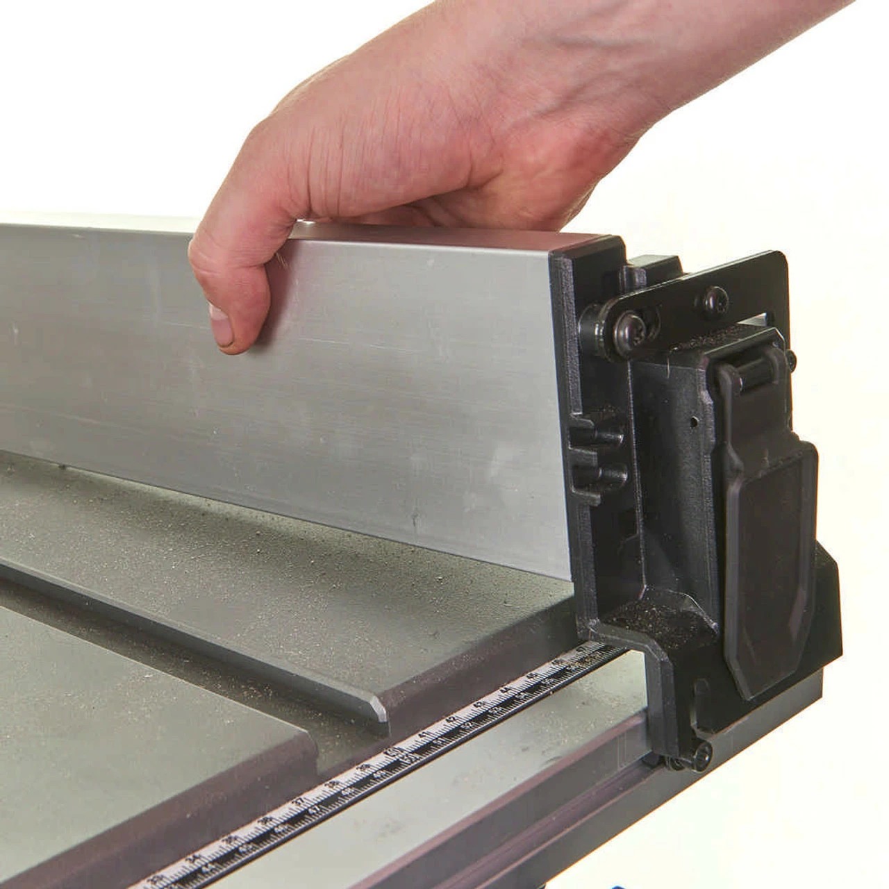 - Rack and pinion sliding fence allows the fence to be adjusted accurately and easily from the front of the saw giving 622 mm of rip capacity.