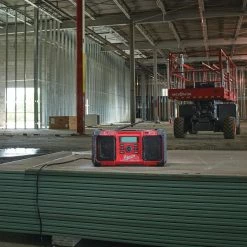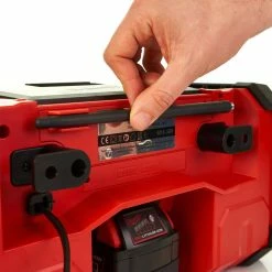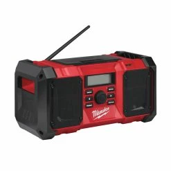 This high-performance job site radio from Milwaukee boasts an audio system with an AM/FM tuner with a digital processor that delivers the highest reception accuracy and signal clarity. It can be powered by either batteries or mains adapter for your convenience and with its robust design it can be transported safely and securely between different jobs.