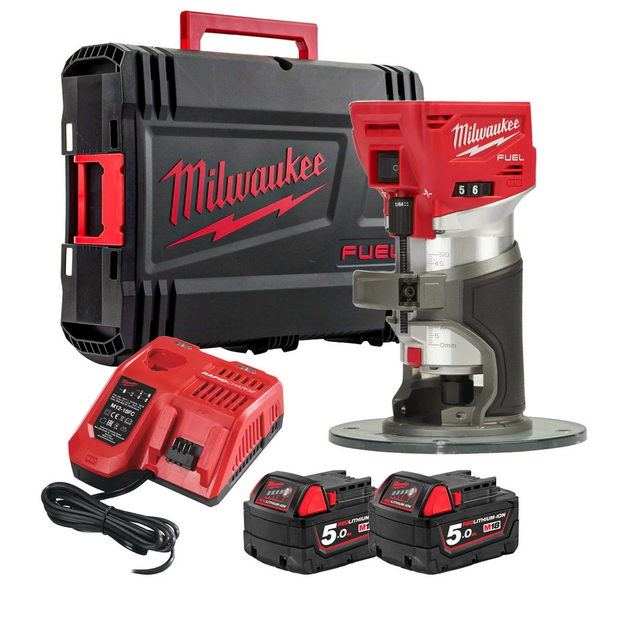 Milwaukee M18FTR-502X 18V Fuel Cordless Trim Router with 2x 5.0Ah Batteries