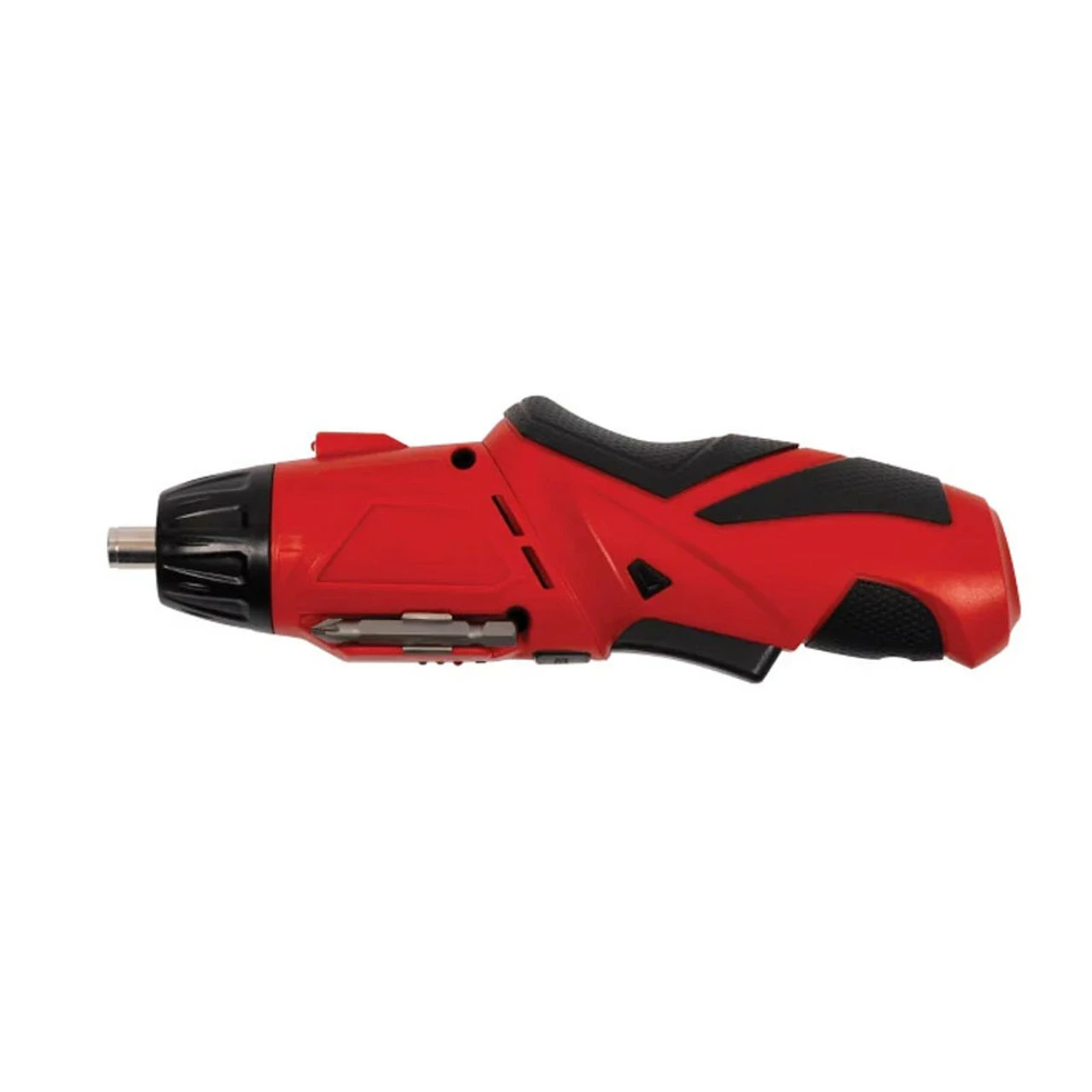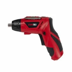 Olympia Tools® Cordless Screwdriver with an easy-to-use pivot handle that changes from a traditional pistol grip handle to a straight handle for use in confined spaces. An automatic spindle lock makes it easy to switch between bits. Fitted with a comfortable soft grip handle and an LED job light. There is also a handy charge level indicator for easier work management.